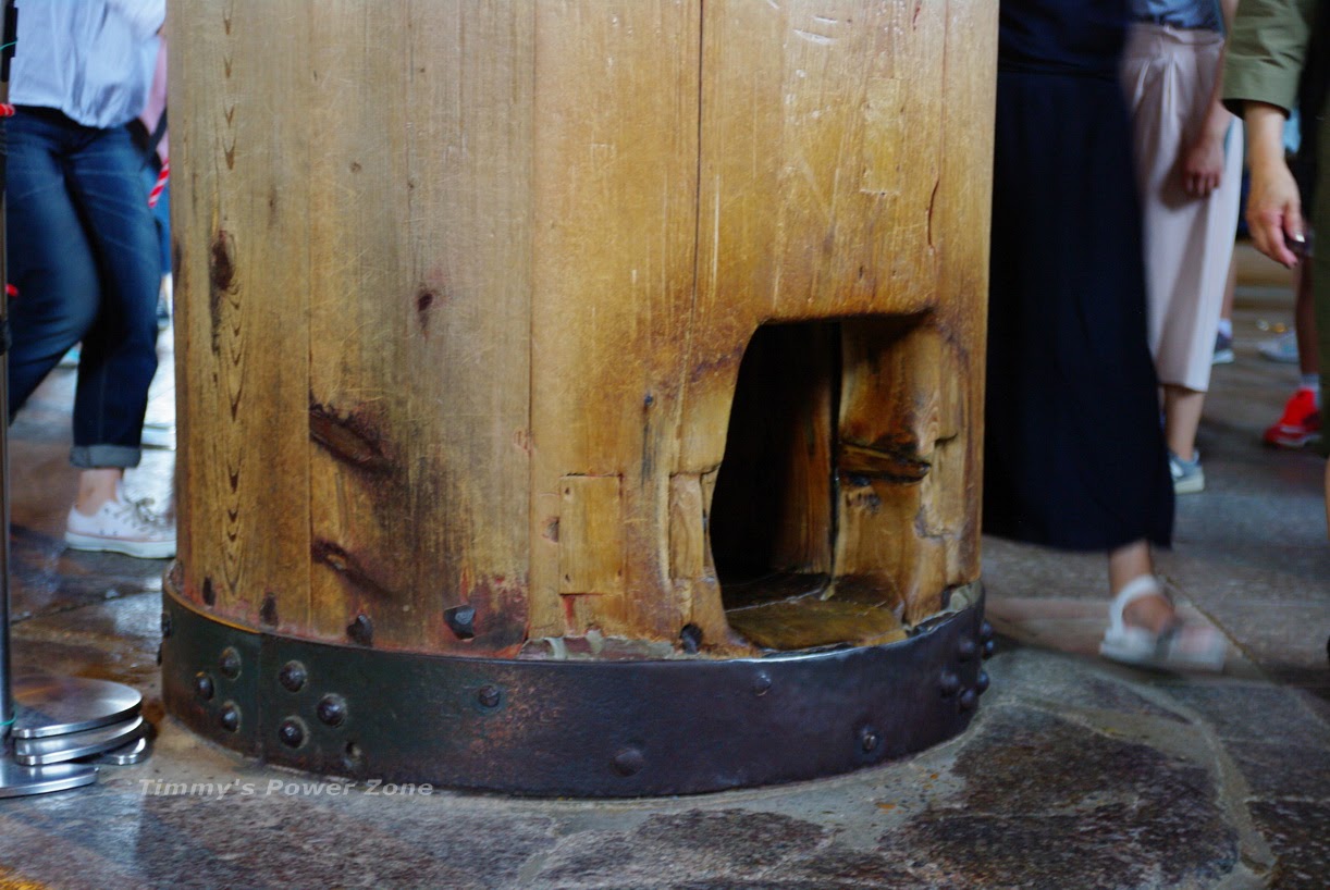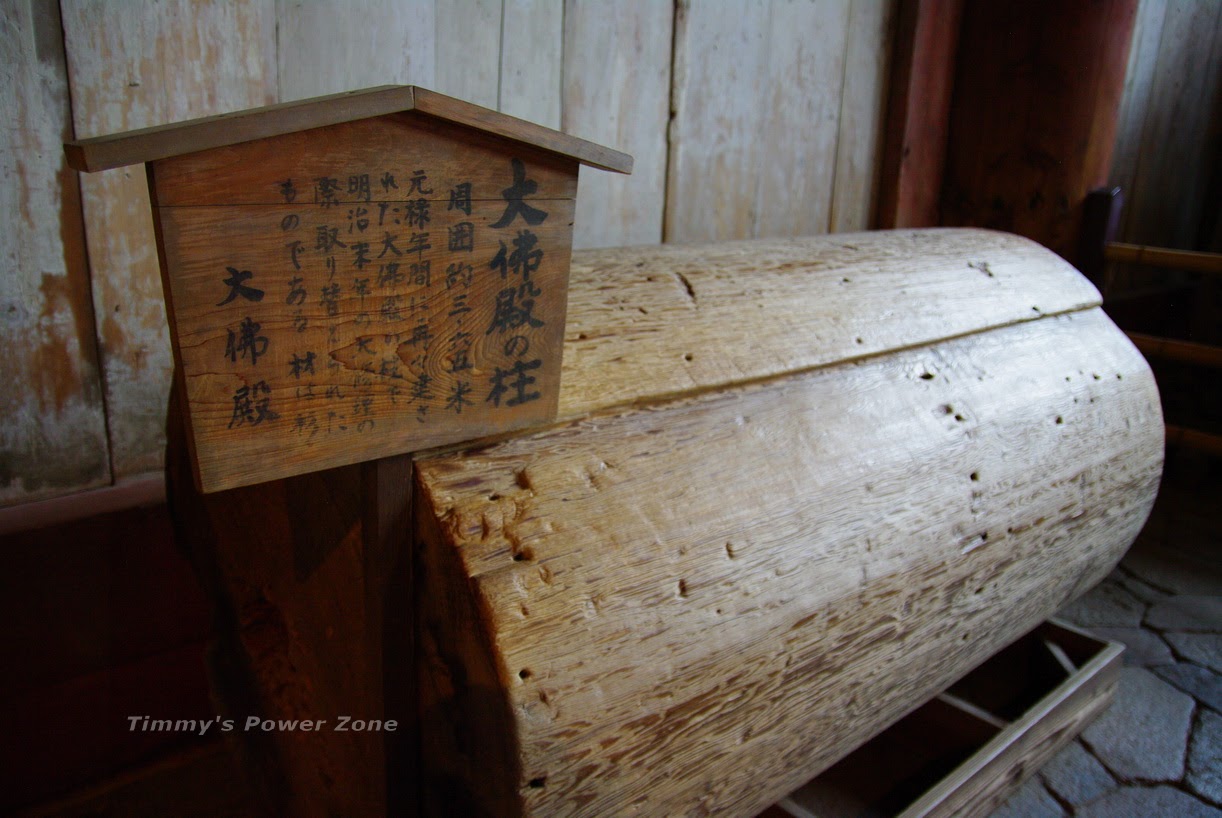 東大寺本身是木造寺廟,而木造寺廟能蓋出這麼高大在多年以前已經是相當厲害了。這裡展示大佛殿的巨柱,圓周有3.65m!