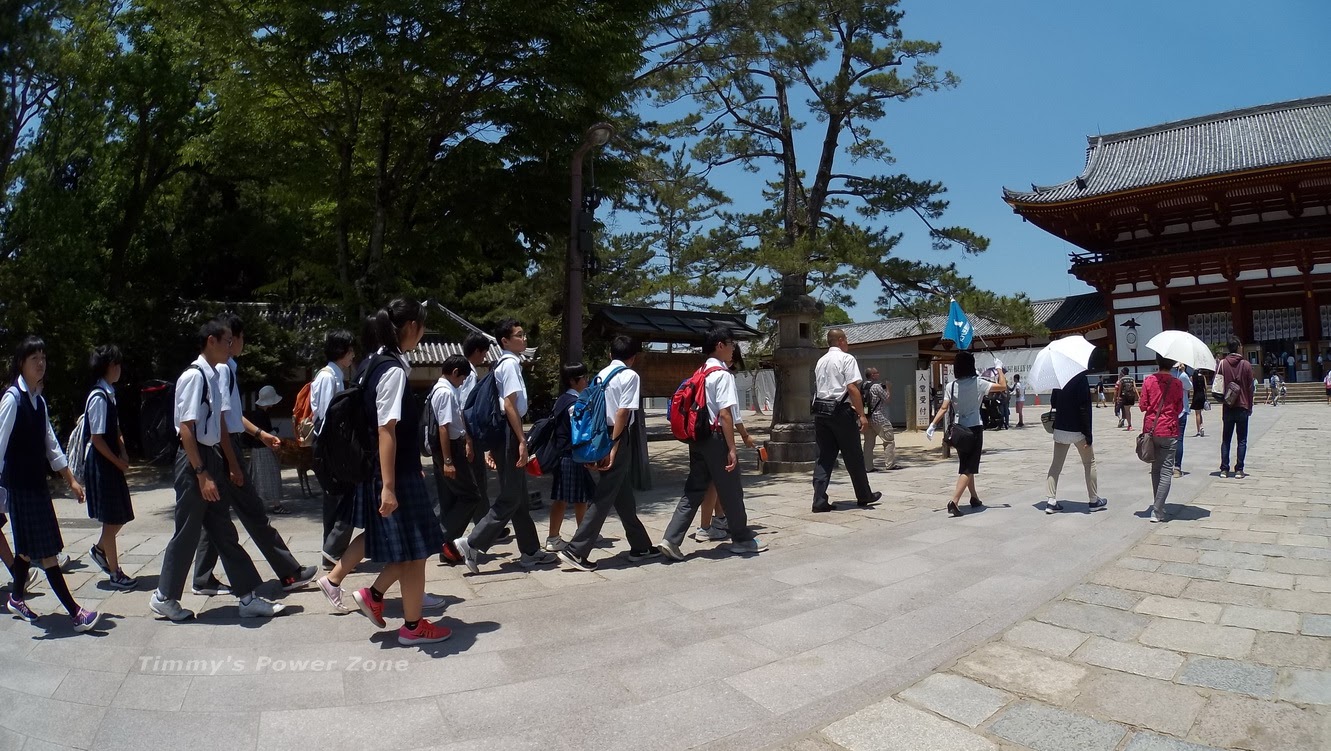 週一這種平日來參觀東大寺,不乏見到戶外教學的學生們。注意舉旗的領隊還有帶手套呢,日本人真的很專業也很敬業。