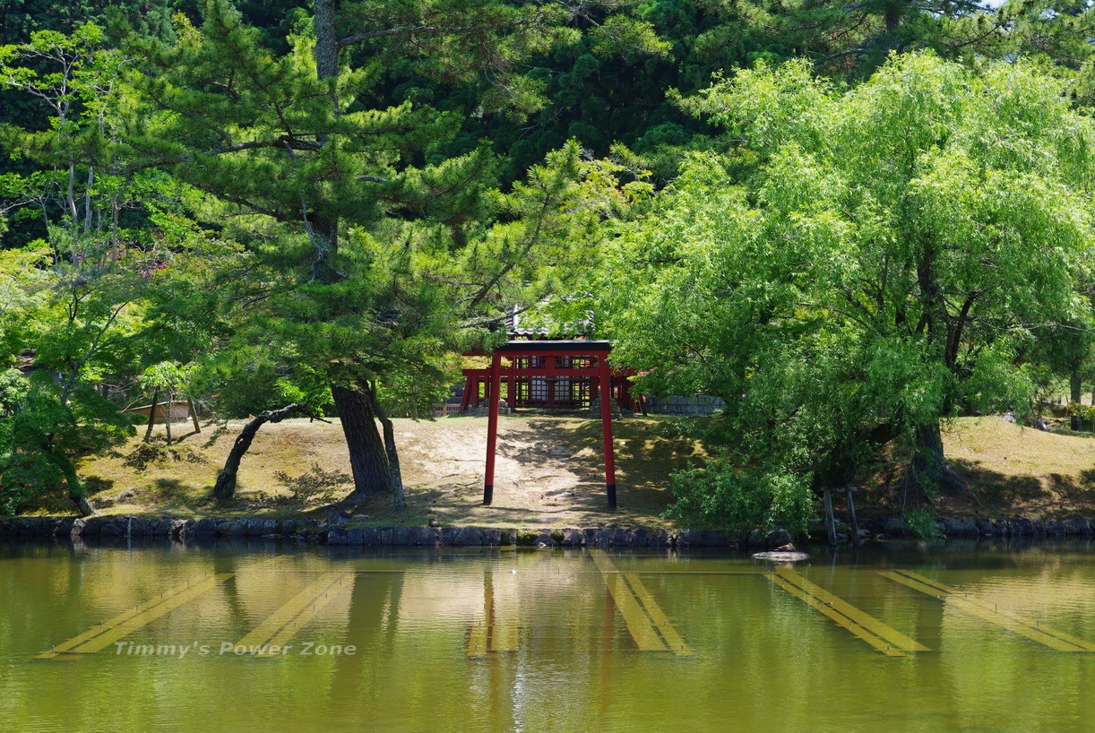 往東大寺途中會經過的「鏡池」,裡面有個小小的神社,綠意盎然的樹蔭與湖水很有夏季的感覺,秋冬季來時感覺應該又不同了