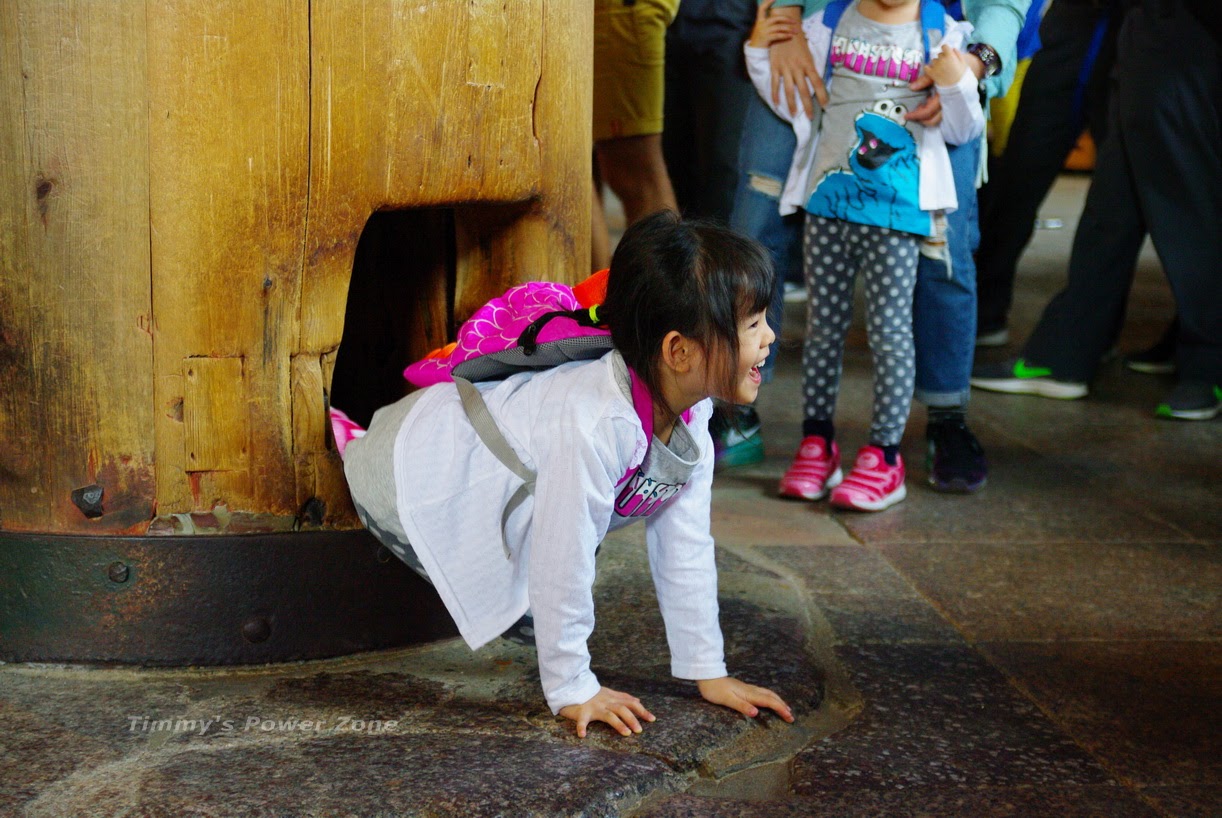在東側某個柱子下會看到很多遊客圍觀,這是另外一個著名景點,因為柱子下有個孔洞,意為佛祖的鼻孔,相傳穿越此洞可祈福帶來平安,所以一堆人在這嘗試穿越並拍照