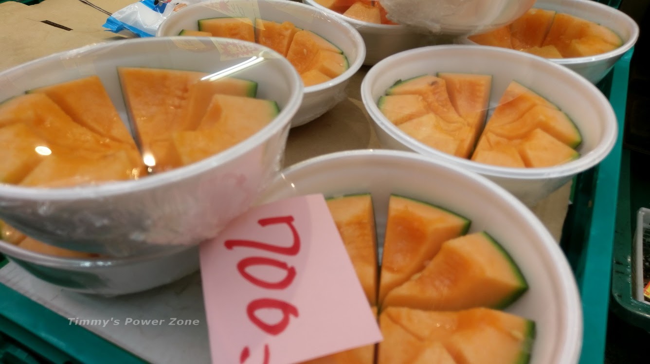 日本的水果攤蠻多都有這種已經去子切好的水果,這哈密瓜要價¥700,應該很甜喔~