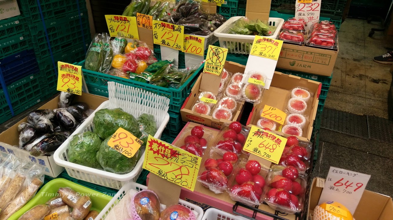 水果攤,強力推薦來大阪一天先來逛個黑門市場,買些水果回去可以當隔天早餐或飯後食用。畢竟來到大阪很多時候都是大魚大肉,均衡一下是必備的。而日本當地有很多平價水果都是台灣的高價水果,像是草莓、水蜜桃...等等。不過像水蜜桃這種也是價差很大,我們有看到¥1000二顆的,也有¥400二顆的,可以多比較一下。
