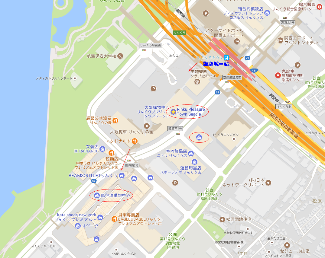11點左右從難波搭乘「南海電鐵」出發,抵達臨空城約12時初。出車站馬上就看到購物中心了。參考GoogleMap