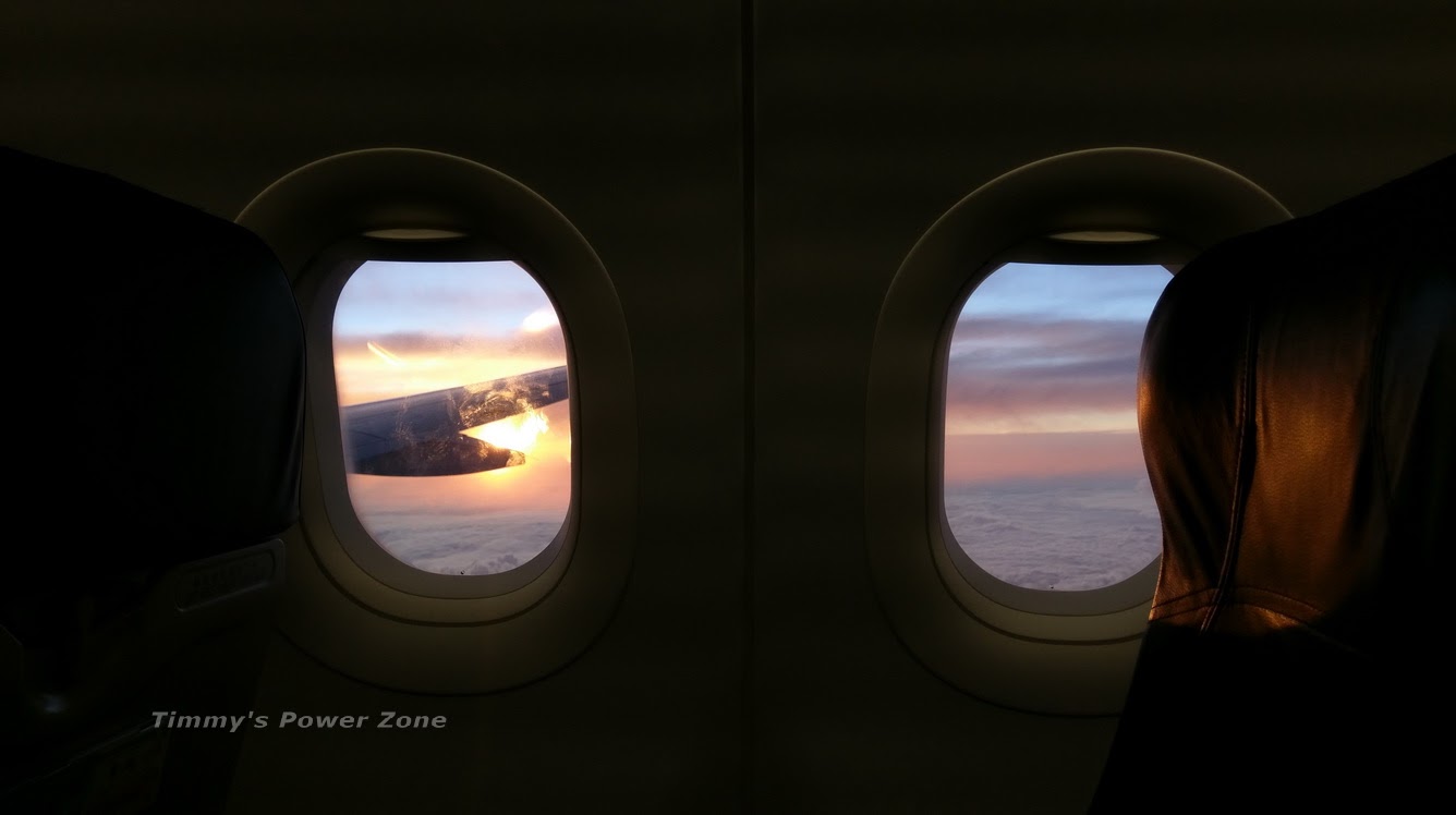 這個時段的班機剛好可以觀賞夕陽,到台灣還有夜景可看