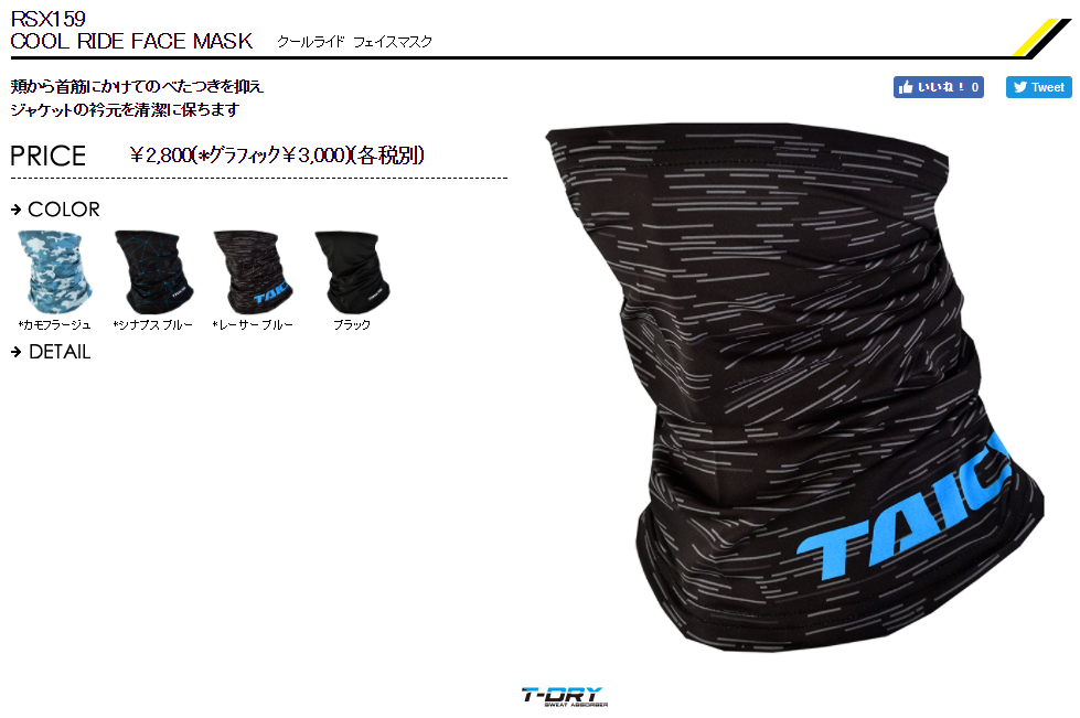 此款面罩賣點在於T-Dry技術,號稱有排汗、通風、速乾、舒適等特性。