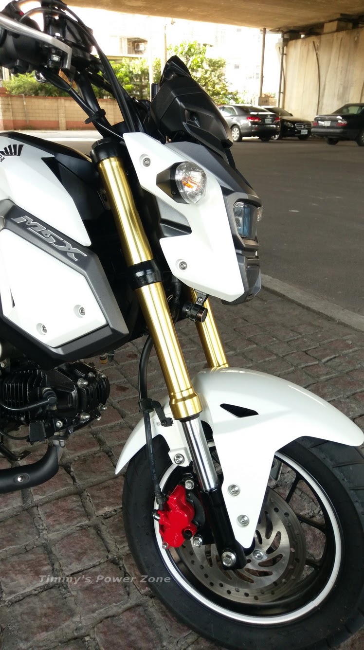 MSX原廠就搭了倒叉的前叉配置,但很可惜的,我覺得這個前叉沒有想像中那麼優,難怪一堆車行出廠就改了強化套件....Orz