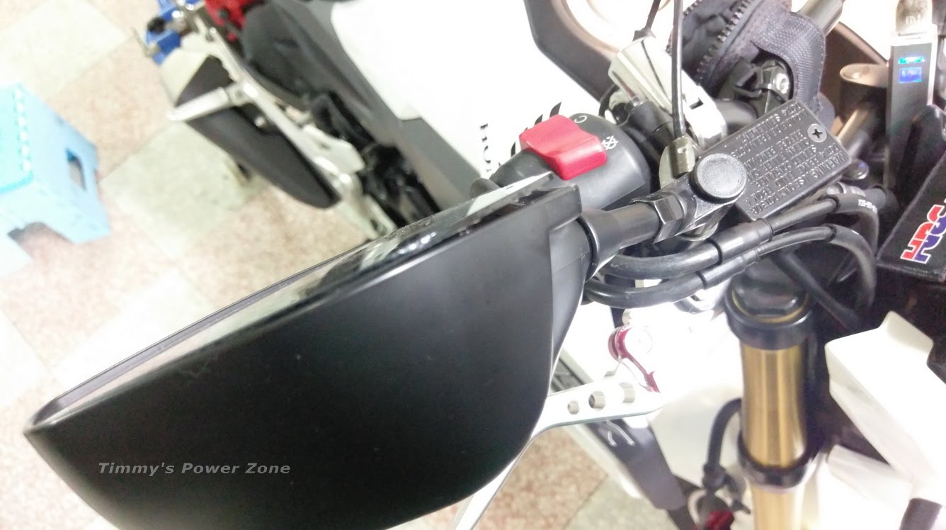 小缺點還是要提一下,鏡面無廣角設計,我自己用大概1/3面積都是被自己的手遮住(GOGORO跟忍300的原廠後照鏡也是如此....XD),如果身材比較魁的人可能遮的面積又更大了。如果有雙曲率的鏡片就更完美了!