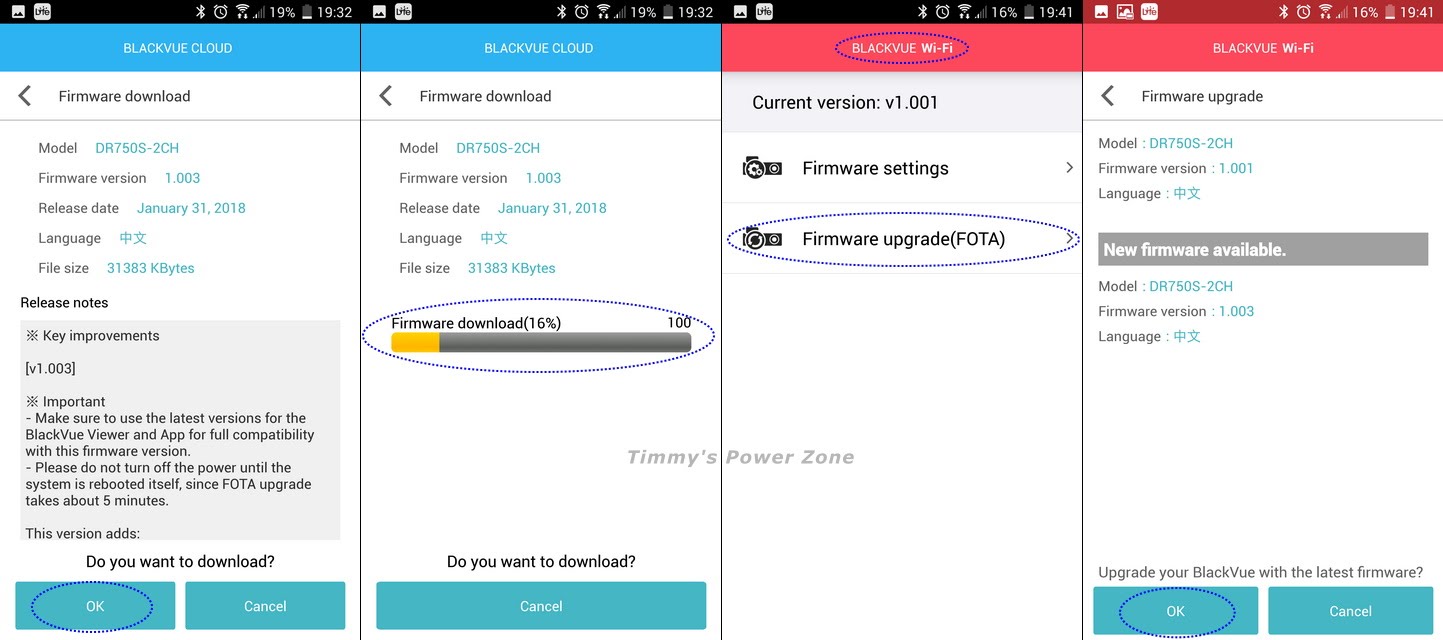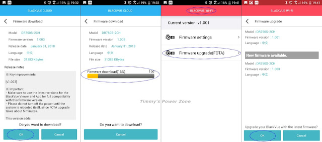 BlackVue APP提供貼心功能,你可以先在BLACKVUE CLOUD上下載最新的Firmware,在透過BLACKVUE WI-FI的[Firmware upgrade(FOTA)]線上更新功能,將Firmware上傳至行車記錄器進行安裝。
