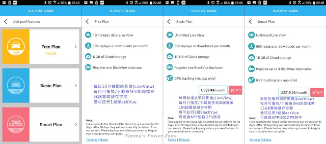 前面提到購買行車記錄器都可連上雲端服務,並可以免費使用雲端服務;但其實免費服務有限制,另有加價的服務可選購。整個雲端的服務分為3個方案,「Free Plan 免費」、「Basic Plan 基本」、「Smart Plan 精打細算」。