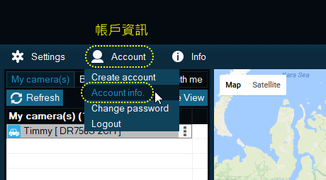 ↓進入BLACKVUE CLOUD後,一樣是先看到Google Map的畫面,直接點選新建帳號,填入
