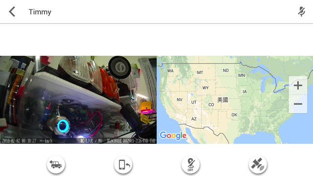 ↓在Live View畫面可以看到麥克風的圖案,點下去就可以跟駕駛人雙向對談了!若當下GPS有收到資訊,則地圖上面會顯示你的行車記錄器名稱、所在位置、時速等資訊。在這整個連線的過程中,若有一些事件發生,也會收到APP的推播通知。