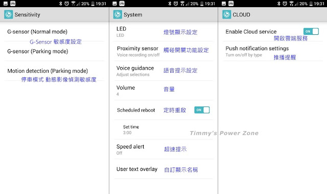 一開始我也不懂雲端的功能可以做什麼,在這次試用後發現雲端功能有點強大,可以遠端查看Live影像、查看車輛位置、線上備份、推播事件通知...等等,相當適合離不開車的愛車人士或貼心照顧家人或想要抓猴的需求者阿~