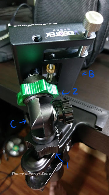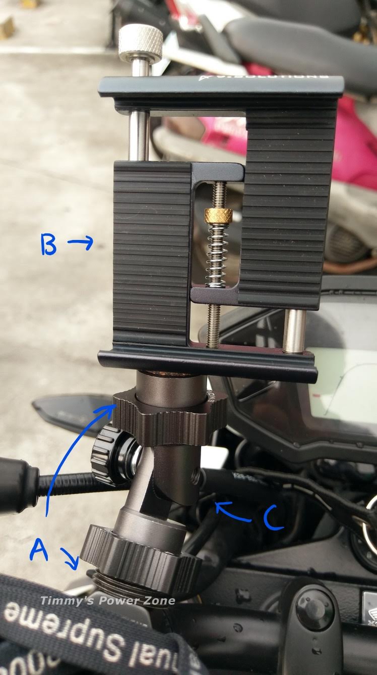↓這次要開箱的兩名大將,A.機車把手相機支架與 C.鋁合金萬向接頭