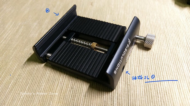 手機夾一共有3個1/4"相機孔,跟一個3/8"的螺絲孔