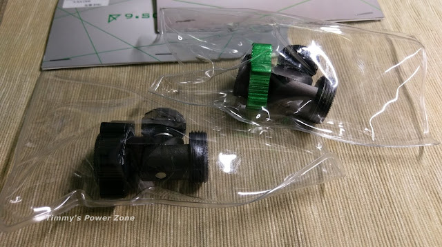 注意到在手轉螺絲上,有多一個墊片,這個在綠色的萬向接頭上沒有看到,仍有些小差異