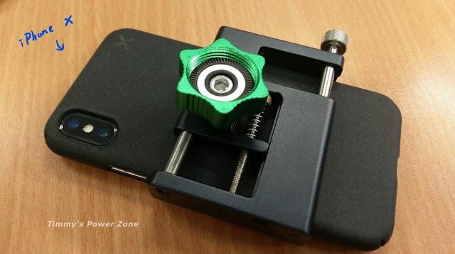 手機夾的操作方式很簡單,只要螺絲調整到適合的位置後,手輕撥開兩邊的夾具,就可以放進去了,再轉緊旋鈕即可。取出也只要旋鈕鬆開,拉開夾具即可取出。裝上與取出的過程中手套不脫掉也可以操作。