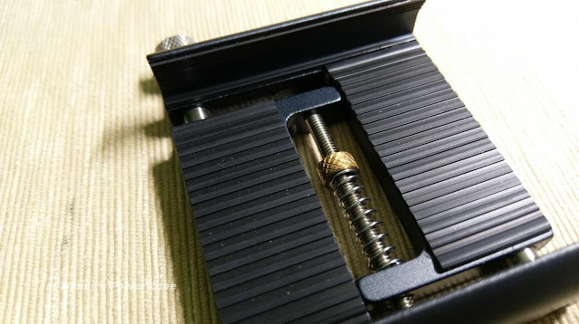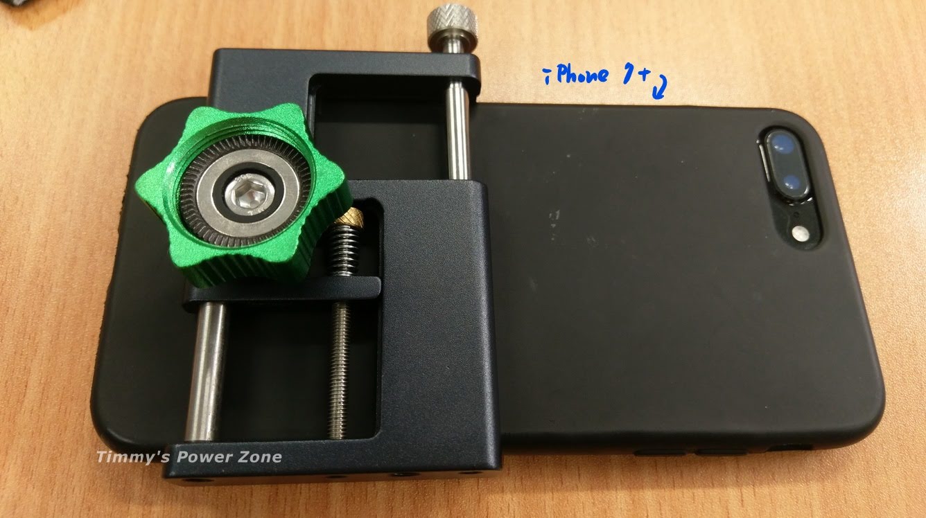 中間有可調整緊度的彈簧與調整螺絲。最外層則是可調整手機夾寬度的旋鈕。