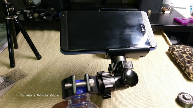 組裝範例,把A的相機底座對準手機夾的1/4",鎖上即可