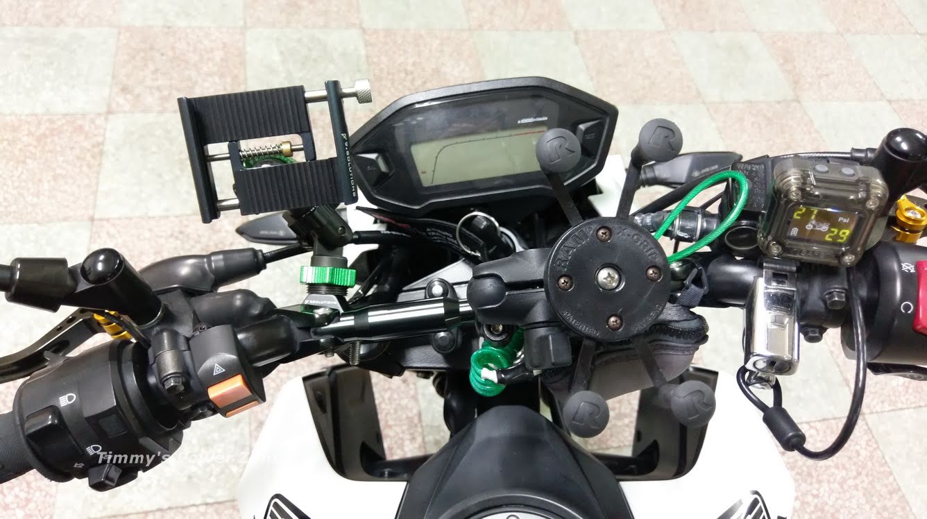 在這個PK組合中,9 SOLUTIONS的支架比較長,但是因為它全金屬對鎖固定,不像RAM Mounts跟五匹都是夾持固定,所以其實使用上是比其他兩款來的更穩固。