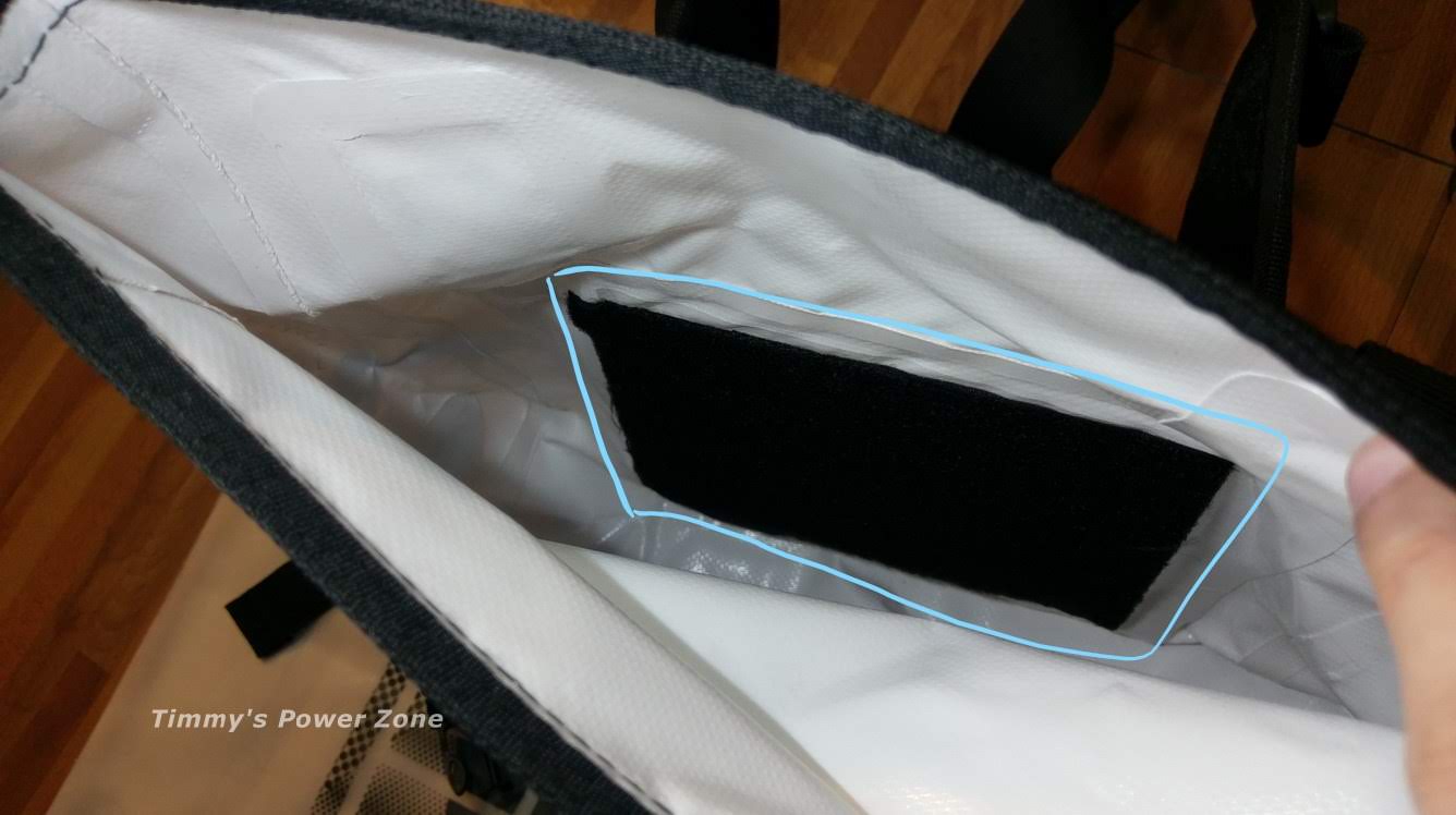 而這個內袋背面也是一大片的魔鬼氈,用來放入PX-1主袋後固定住,這設計真棒,完全解決收納性的問題。