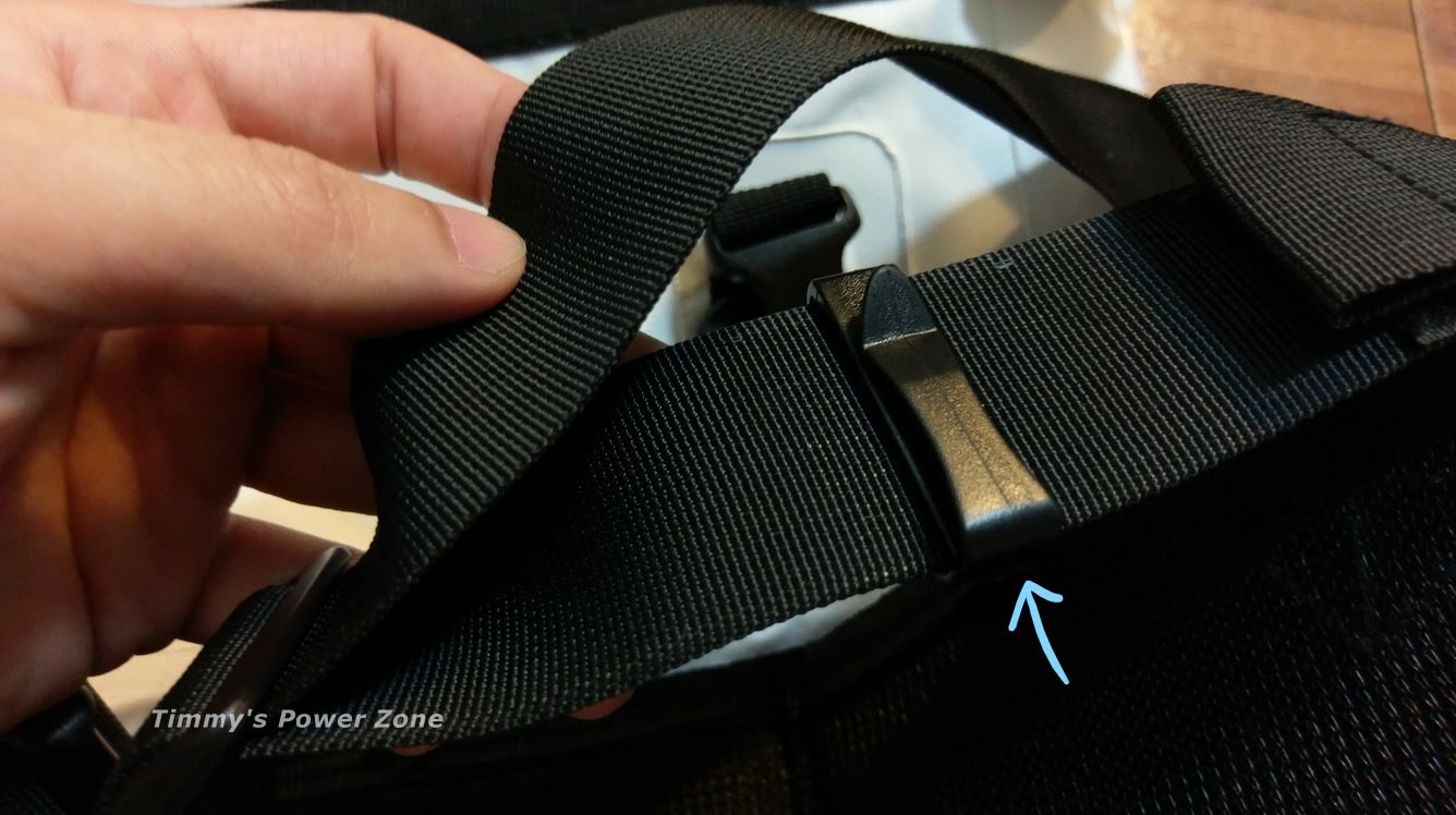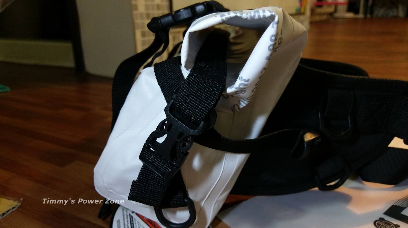作為腰包,我覺得這個設計是最重要的! 就是調整腰包背帶長度的地方會有夾扣來夾住多餘的背帶,一般腰包如果沒有這個夾扣,背袋就會在那邊甩來甩去非常惱人。有此設計先加分~