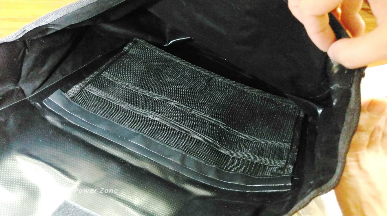 PX-7 跟先前提到的防水包一樣,沒有夾層,但是他有提供一個網袋夾層。此夾層共有3個,最大的3夾層寬度約30cm,相當夠用