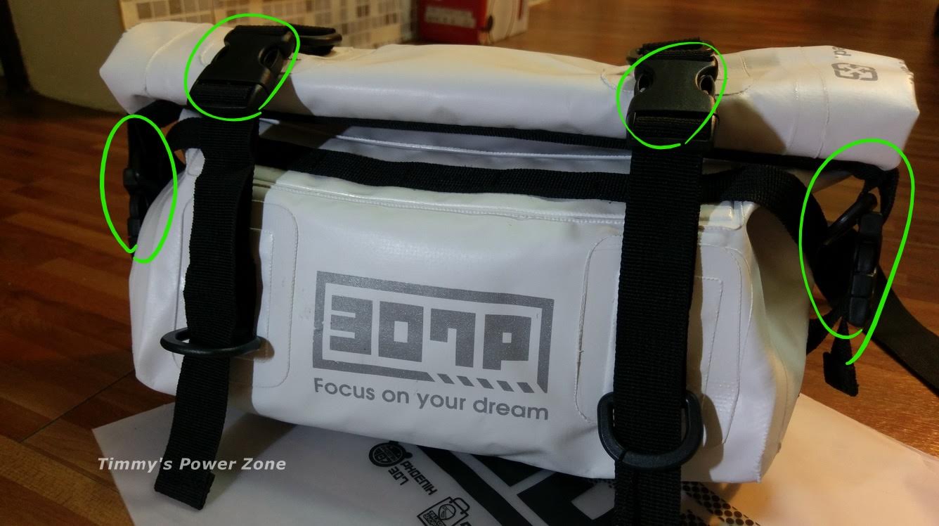 側面兩個是用來固定捲起來的上蓋強化防水用的。這樣設計對防水性能來說相當足夠。