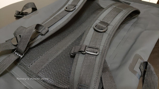 背面的部份我覺得有蠻多亮點的(以我看過的防水背包+這個價位來說)