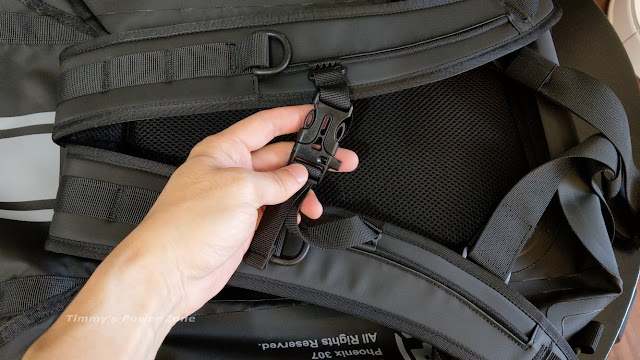 這款PX-5 PRO的胸扣調整方式是「滑軌」的調整方式,比一般使用「日」字形調整扣可以更快速的調整高度,這種調整方式跟前些入手的「The North Face」的登山背包相同設計。