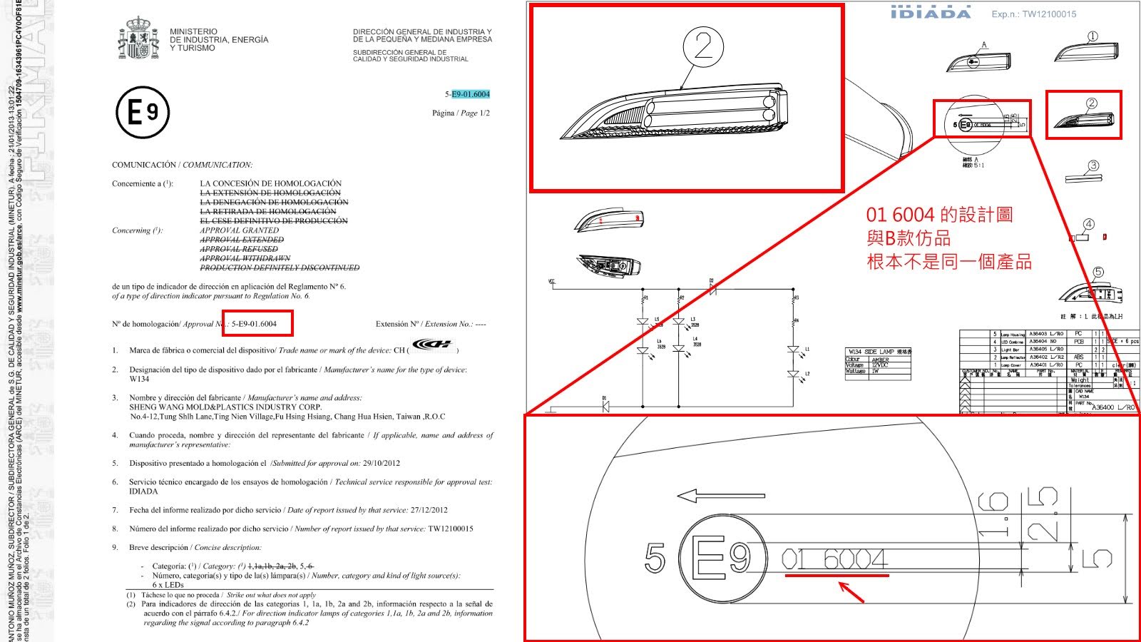 ↓「01 6004」的原始證書內容,設計圖可看出商品是導光條後照鏡,並不是格柵式的序列方向燈,很明顯的是移花接木