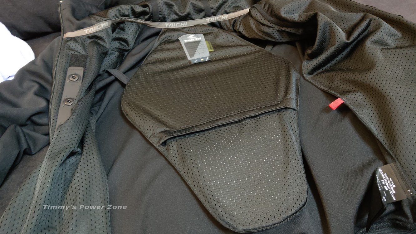 ↓打開拉鍊後,可以看到背部護具跟T-DRY快乾透氣內裡