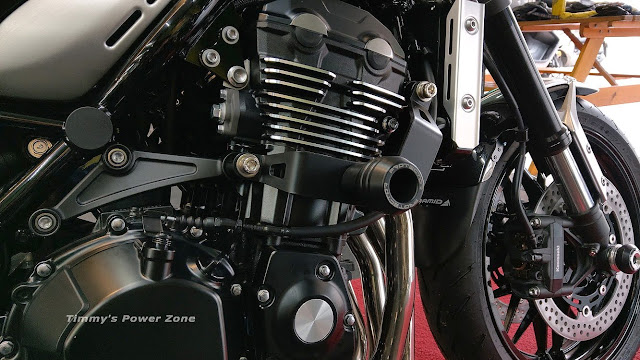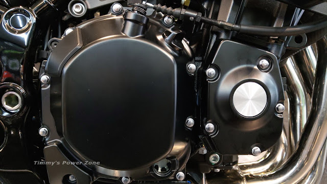 ↓948cc的水冷引擎,引擎的體積目測跟我先前Z750s好像差不多,Z900RS這次在汽缸外觀上加了一些散熱鰭片設計,美觀效果多於實用。(但洗車有點麻煩XD)