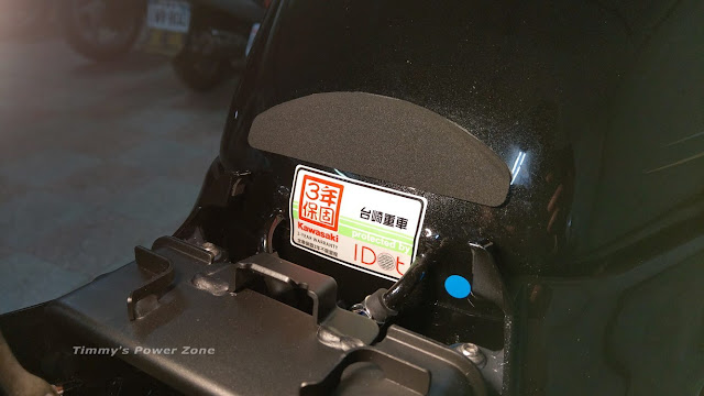 ↓對了,新車回家一定要先把台崎的貼紙撕下來...因為貼的還不是很久,比較好撕;這些貼紙以後太陽曬久就會龜裂,非常建議把它先撕下來,貼不貼是無所謂,只是有礙美觀。(我是改貼到座墊下)