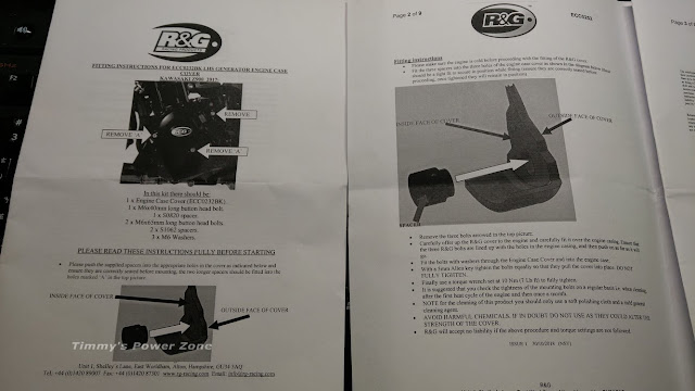 ↓引擎護蓋安裝的方式很簡單,他有附上對應的螺絲跟墊片(圓柱狀),依照手冊的說明(其實不看也沒什麼難度啦)逐一把原廠螺絲卸下,換上它附贈的長螺絲即可。安裝唯一需要注意的就是,他有提醒別把所有原廠螺絲都拆掉,那後果應該很尷尬(油應該會流滿地)。