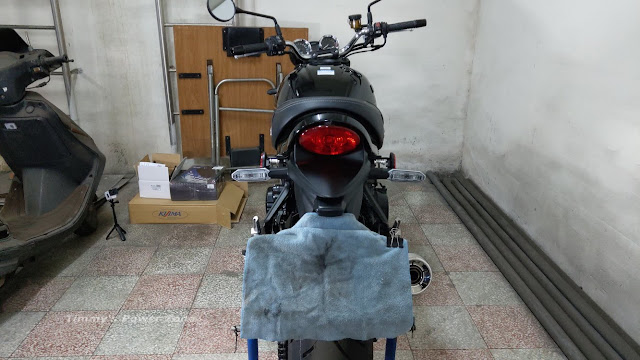 ↓準備施工上車,Z900RS原廠的引擎外蓋其實蠻好看的,為了保護它只好把它遮起來~