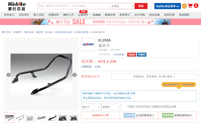 大車的零件在台灣好像不太喜歡放上網,找到的都是固定的幾個賣家,而且多半要透過問答詢價,感覺實在很差,好像價錢不能透明一樣,而且問了價錢每個都賣一樣阿,是問心酸的嗎= =?