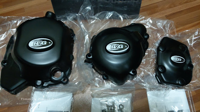 ↓R&G的產品有賣護蓋(PP)也有滑塊,滑塊的造型比較普通,也只有兩件式;選擇三件式引擎護蓋應該會比較理想。