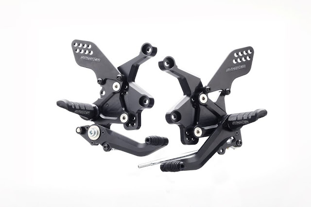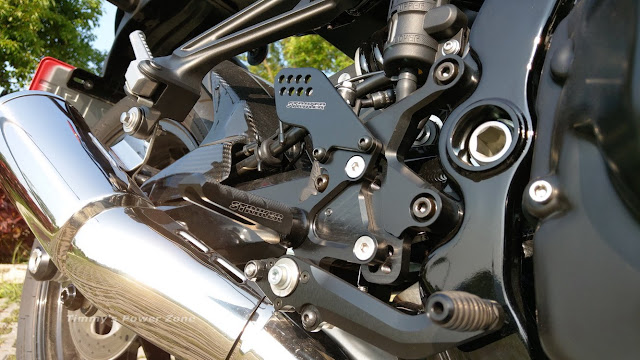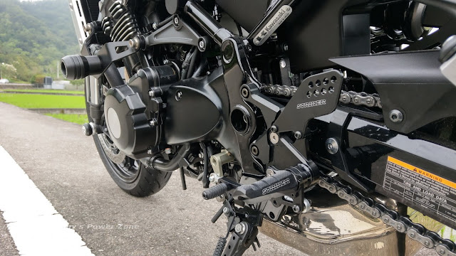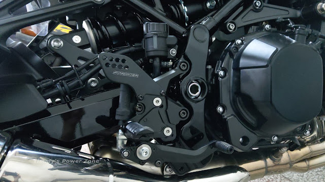我還在騎Ninja 300的時候,也有改腳踏後移,那時候買台製知名改裝品牌的產品,全不可調;是的,我沒打錯字,它的腳踏後移全部都不可調,不能後移也不能上調;不過對我來說是夠用的,因為我改是要改騎乘姿勢,倒不是要追求過彎極限。