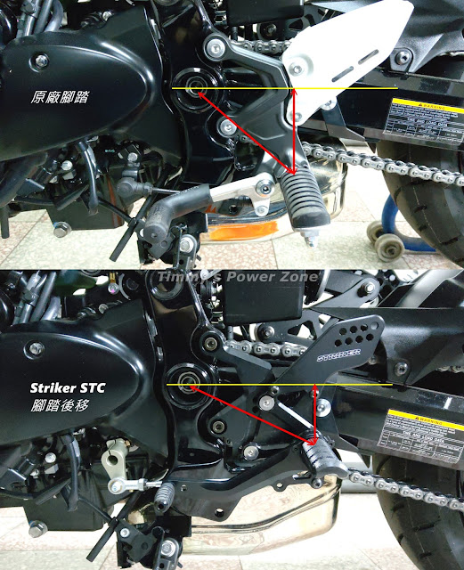 ↓因為原廠的腳踏位置真的很尷尬!對於哈比人身材的騎士來說,腳要踩平在地板已經有點辛苦了,偏偏原廠腳踏位置會干涉腳放的位置,會勾到小腿肚或是卡到脛骨。這樣對於腿短的人來說實在很痛苦阿!!
