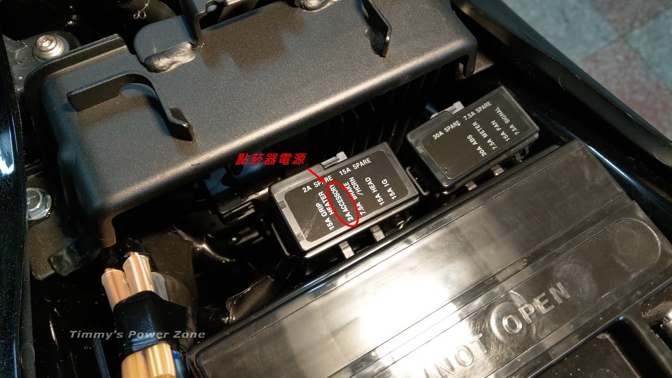 ↓這個點煙器的最大優點就是它有獨立的保險絲,東西真的短路了也不會影響你的車子運作(一般搭線搭尾燈、電門的,燒保險絲的話功能就停擺了,非常不建議直接跨接搭線),對應的保險絲位置是盒子上標示「Accessory」的位置。