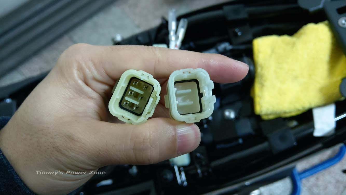 ↓電源取出線跟故障碼診斷接頭的比較,基本上長的都一樣,差在電源取出線另外有6Pin針腳。黑色的是防水橡膠圈。