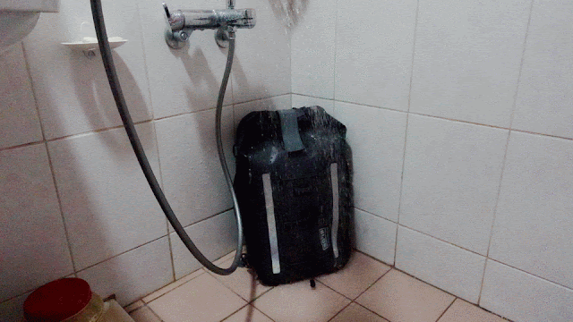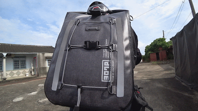 我騎車帶防水背包已經有10年了,也算小有心得;防水背包基本防水來自「PVC材質+捲封設計」,所以看到這種捲封方式,我都不擔心它的防水效果,若會滲水比較可能來自捲封不確實或是包包有破損。