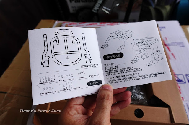 ↓手冊有清楚的分解圖,內容物是4個部件的零組件+螺絲、墊片等