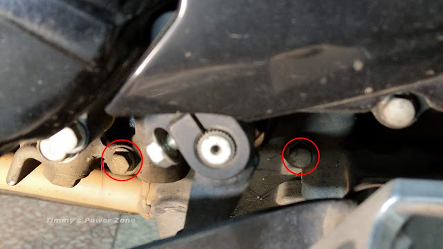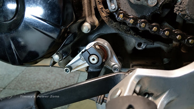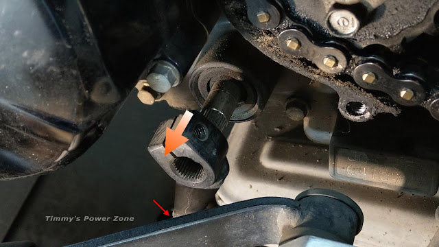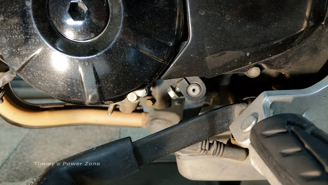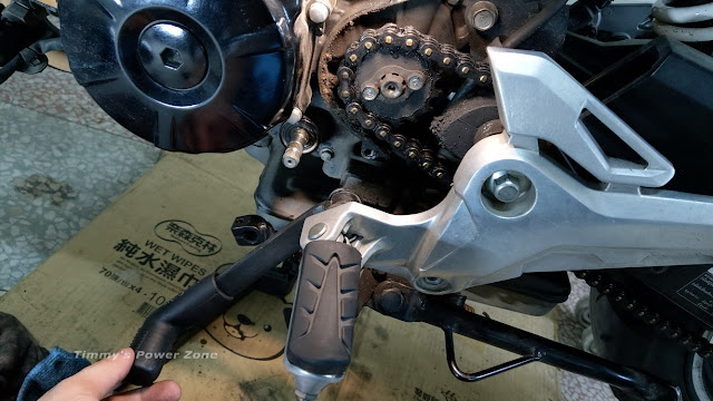 幸好最後我拆腳踏總成下面的螺絲,再稍微放鬆固定搖臂的螺絲,就可以讓腳踏總成稍微移位,順利把打檔桿卸下....真是搞死我了。