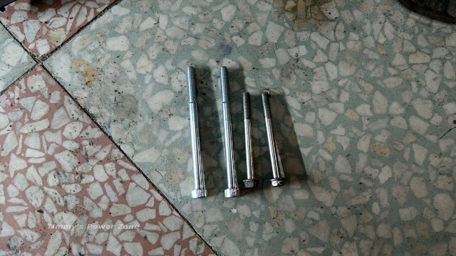 ↓右邊兩顆拆下來的螺絲,左邊是它附的加長螺絲,加長的部份要套上它附的固定座