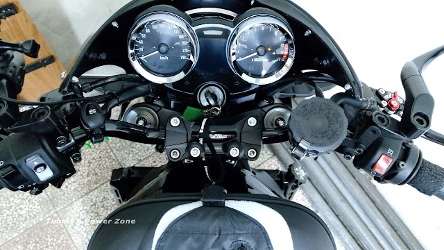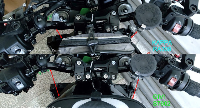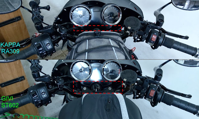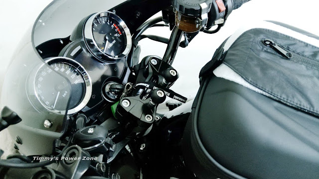 ↓近看油箱包與手把的距離,明顯可以看出ST602比RA309更適合掛在Z900RS上。