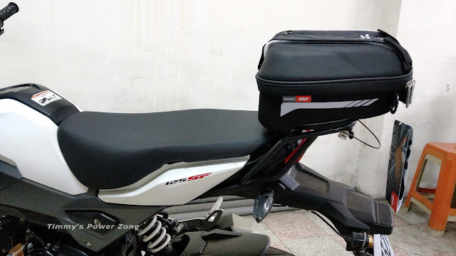 ↓掛油箱包這樣會好看嗎?其實我也想過這問題,當然是沒有油箱包的時候看起來簡單俐落比較好看,可是出門騎車要真的只有一支手機、一個錢包是騎不遠的。還是要有個包能裝雨衣、補胎包這類的東西有備無患。
