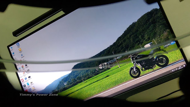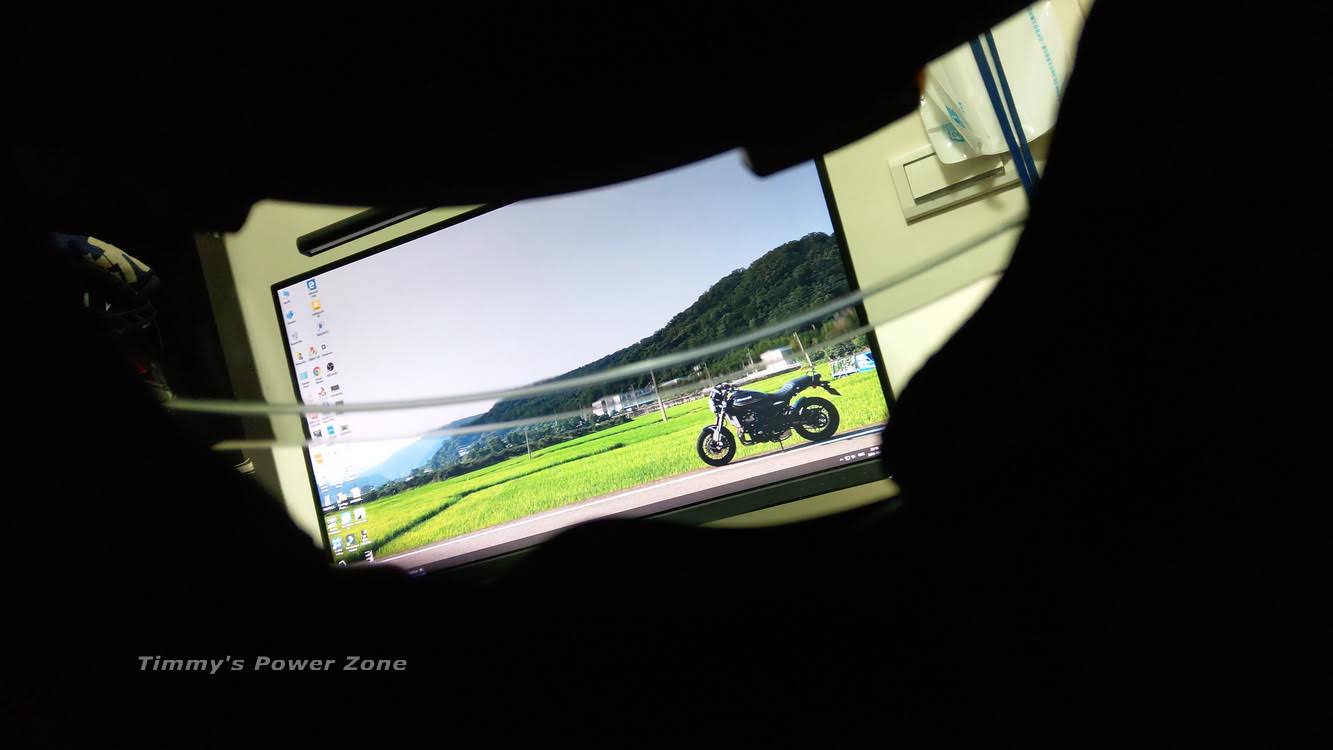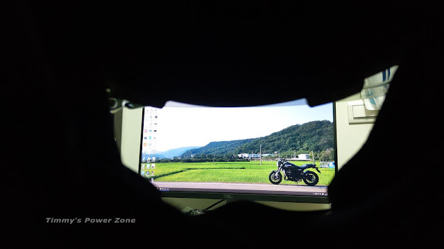 ↓鏡片半關後,上方可明顯螢幕亮度有收斂,單以視覺感受來說,沒有那麼刺眼,亮度比較暗一些。