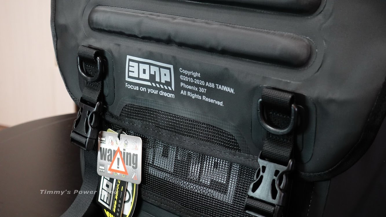 ↓最前方則是B款式(網袋拉鍊)的開放式拉鍊袋;拉鍊袋若沒裝東西可看到顯眼的307P Logo,這跟PX-5 Pro的網狀前置物袋有異曲同工之妙。這個空間因為沒有任何防水機能,比較適合放像零錢、鑰匙、識別證這種比較小物且要好找的東西。