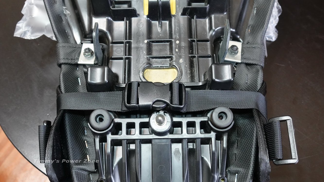 ↓首要第一步就是先把馬鞍包固定在椅墊上,馬鞍包上有一組插扣是給小型椅墊裝的,另外兩側還有「口」字型的扣環可以自己固定在比較大面積的椅墊上。下圖這是我的MSX原廠椅墊。